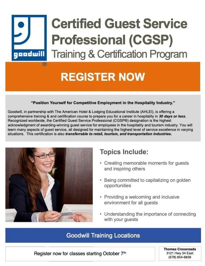 About Who We Are Our Mission Leadership Our Impact Success Stories Valued Partners Shop Shop Find A Store Shop Online Donate Donate Stuff Donate Time Donation Centers Computer Recycling Careers Find A Job Careers at Goodwill Calendars & Events Training Certification Courses Career Development Courses GED Prep & Testing Veteran's Services Scholarships Find A Training Center Upcoming Trainings Business Why Goodwill Our Services Contract With Us Contact A Representative Locations Retail Stores Donation Centers Career Centers Training Centers BRIDGE GED Program Opportunity Center PowerWorks Tax Preparation Locations Virtual Career Center