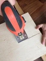 If you have one, use a jig saw to cut out the Luan, and then sand the edges a bit. It doesn’t have to be sanded perfectly, as this part will be hidden inside the top frame, but it needs to be smooth enough to fit nicely in the frame and for the glue to grab onto. After sanding, remove dust with a damp towel and allow to dry.